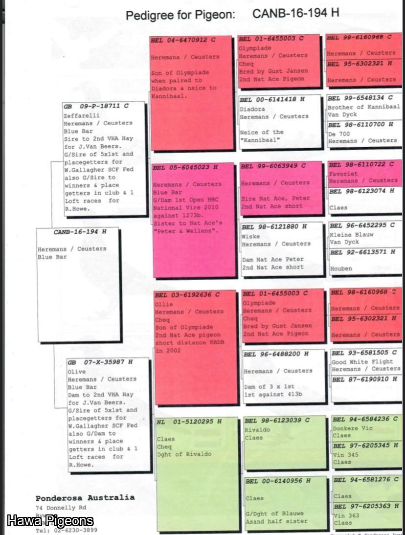 Few youngsters only raced from 194 proven to be a good stock bird his father to
