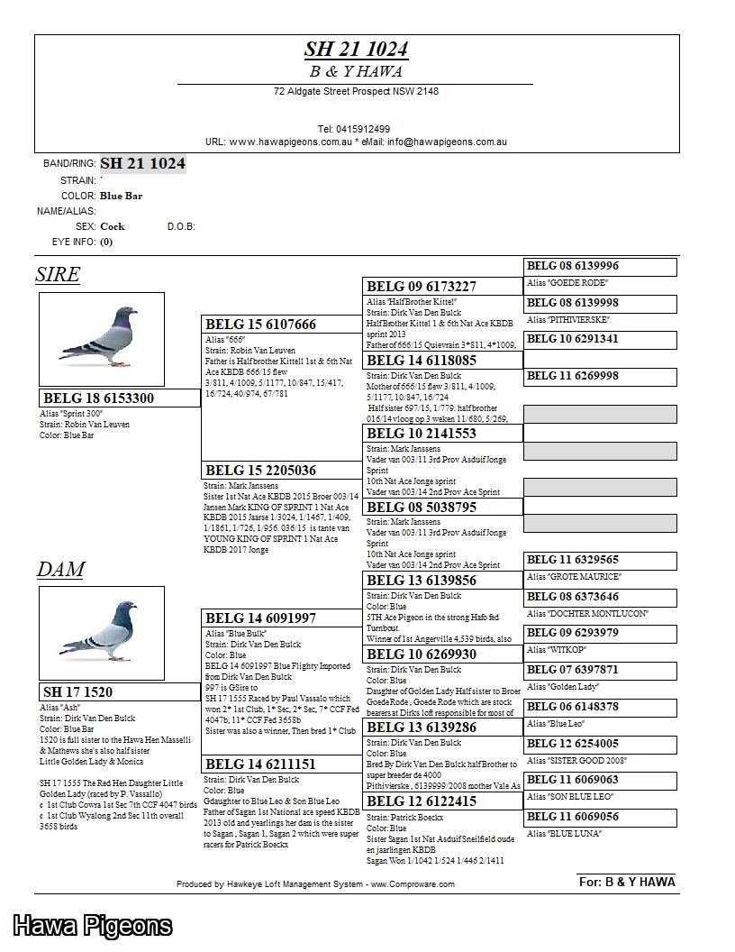 SH 17 1529 Son Little Golden Lady a brother to Red Hen & seventy-two was loaned to M. Bou-Said he became sire of 1258 The Milad Cock triple winner; I sold a daughter of 1526 to Xia it bred the CCF Young Bird National winner 2021 the same race 1258 The Milad Cock won 12th overall from Girilambone CCF Young Bird Derby